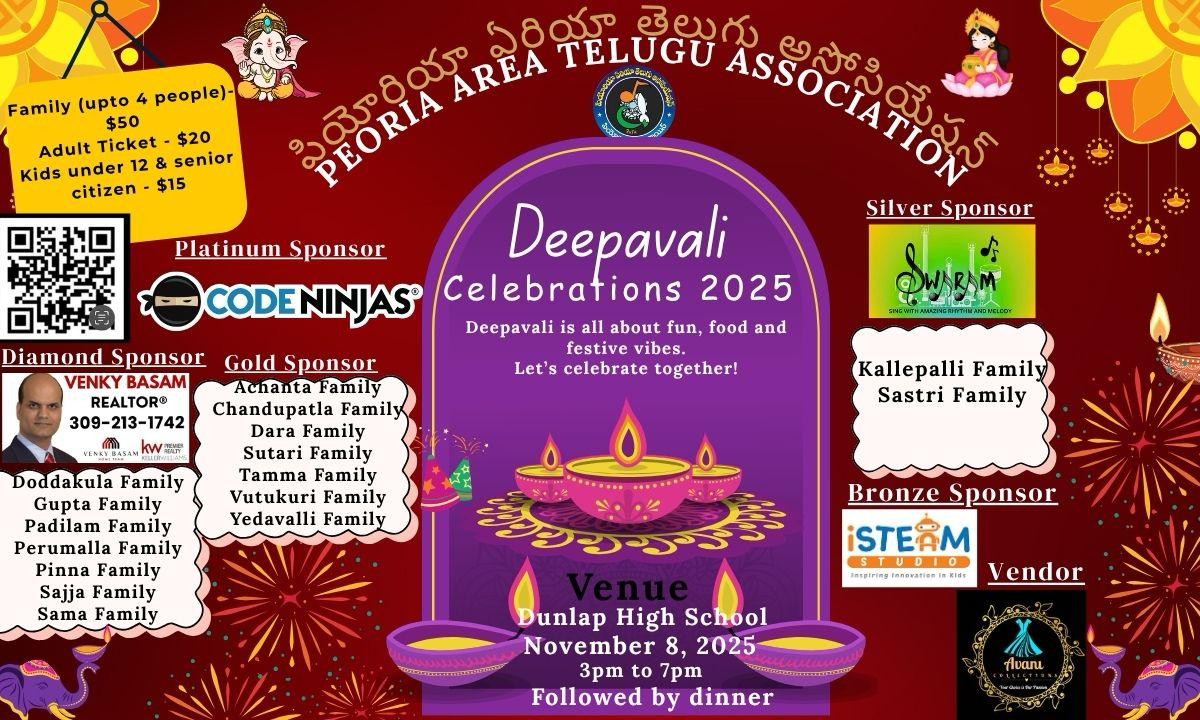 Don't miss out! Tickets for PATA Deepavali event are officially on sale. Join us for an unforgettable experience on November 8th 2025 at Dunlap High School.